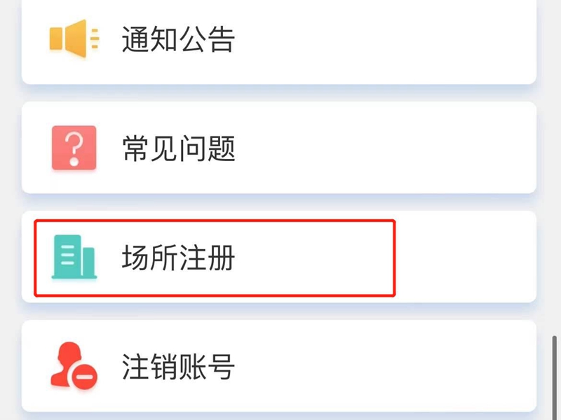 2、认证完毕后,滑动到最下方,选择“场所注册”。