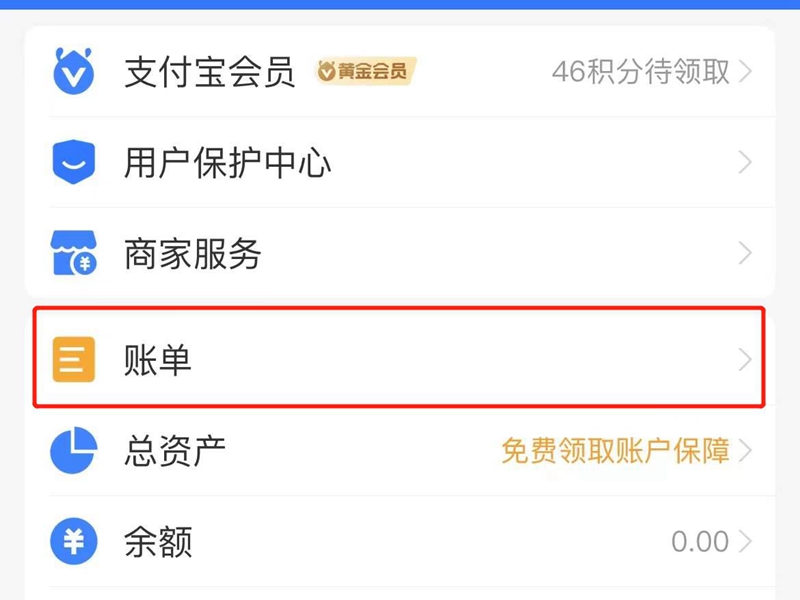 1、进入支付包app,点击右下角的“我”,选择页面中的“账单”。