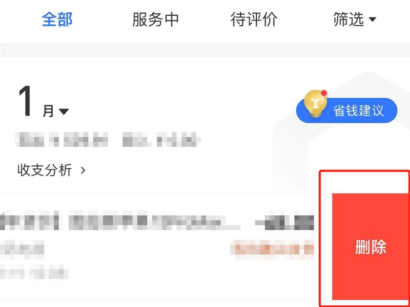 3、找到需要删除的账单,向右滑动账单,选择“删除”即可。