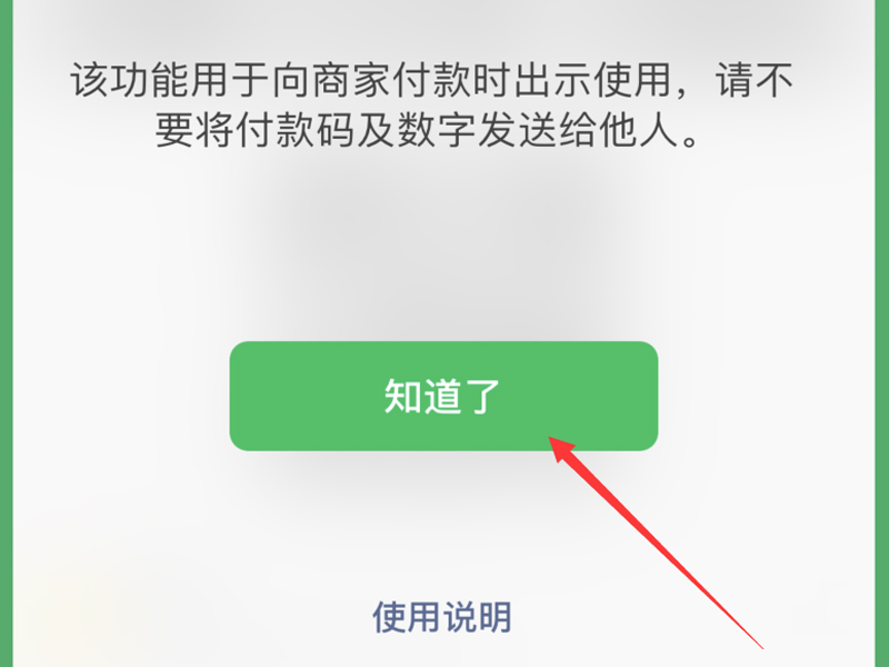 3、点击“收付款”按钮,点击页面中的“知道了”,打开二维码页面。