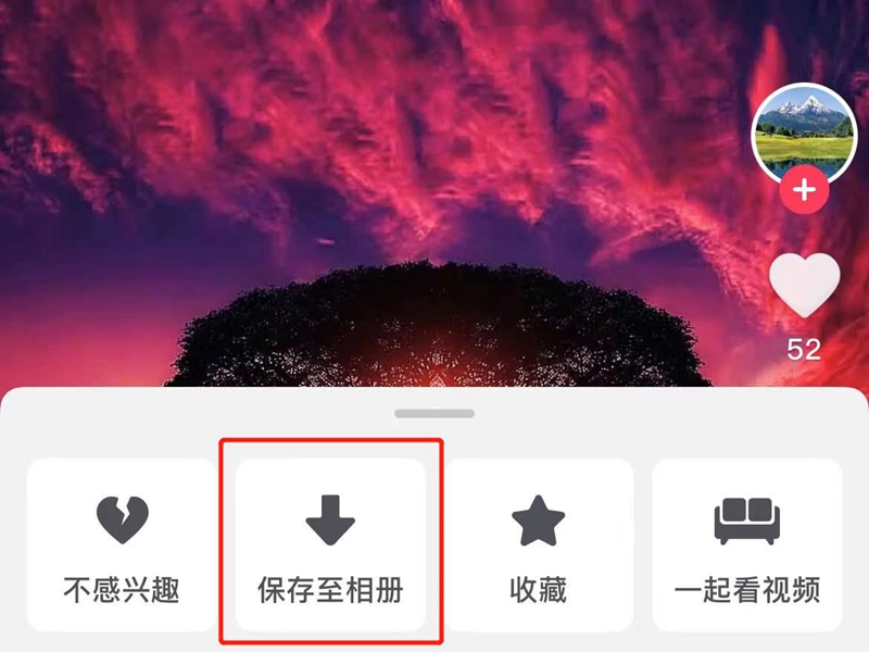 1、进入抖音app,找到需要保存的图集,进入播放,长按屏幕,选择“保存至相册”。