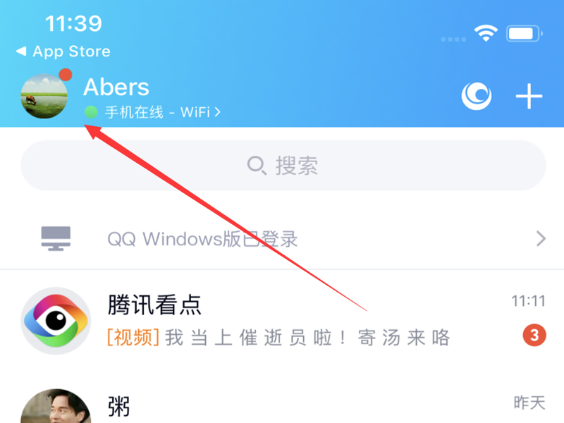 1、打开手机qq,点击左上角的头像,进入菜单栏。