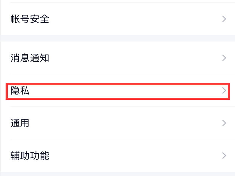 2、点击“设置”按钮,进入“隐私”的设置页面中。