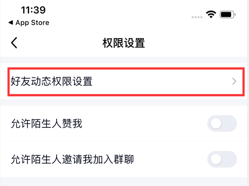 3、点击“权限设置”按钮,进入“好友动态权限设置”页面。