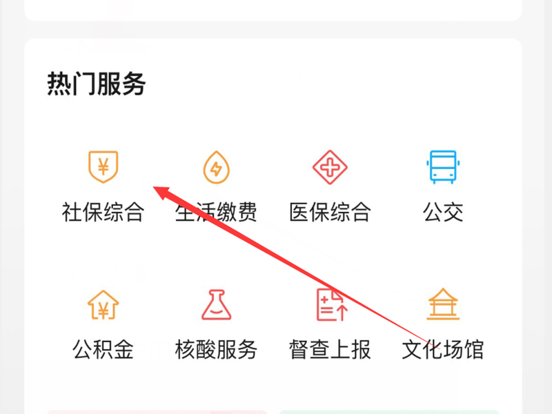 3、点击“城市服务”按钮,进入页面中的“社保综合”。