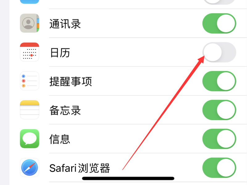 3、在icloud的页面下,把“日历”后面的按钮关闭即可,关闭后苹果日历就不会再收到垃圾提醒了。