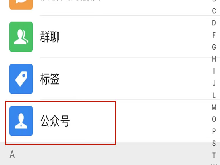 1、打开微信,切换到通讯录页面,点击“公众号”进入公众号页面。