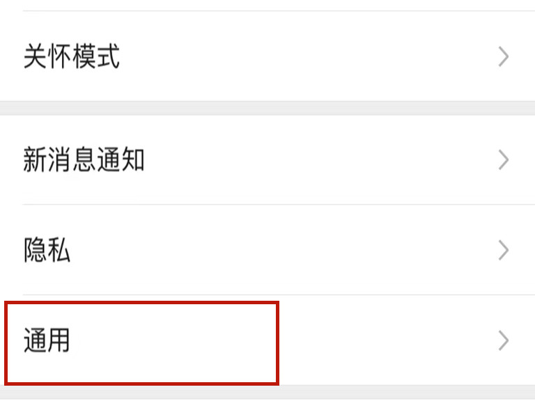 2、点击“通用”进入微信通用页面。