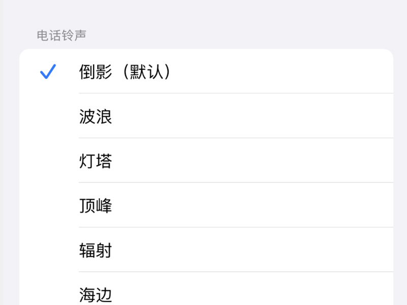 3、在此页面可以设置不同的来电铃声,勾选即可设置成功。