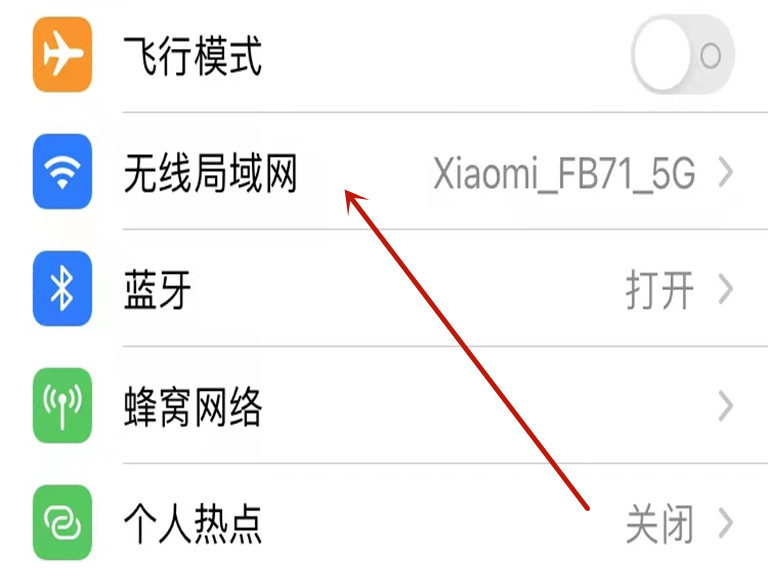 1、打开设置,点击“无线局域网”进入无线局域网页面。