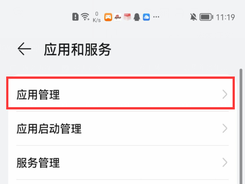 2、点击“应用管理”按钮,进入应用管理的设置页面。