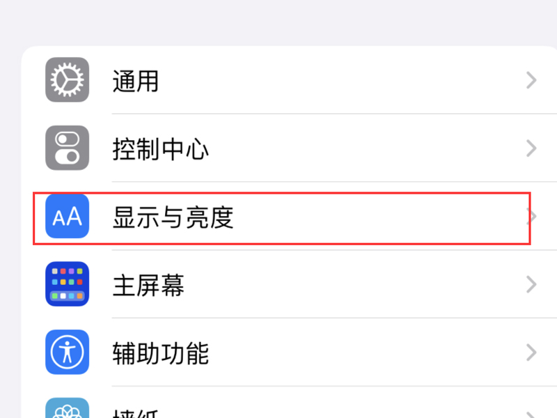 1、打开手机的设置,点击“显示与亮度”按钮,进入显示与亮度设置中。