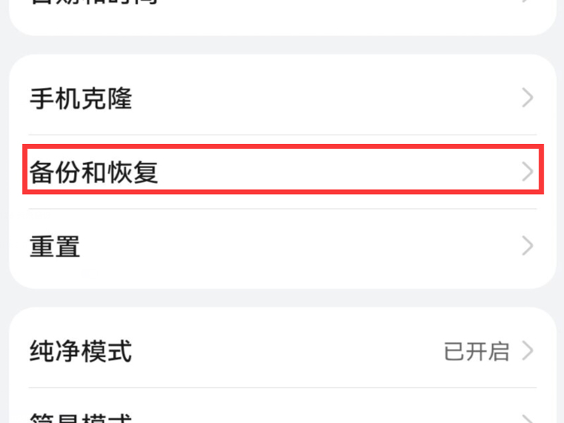 2、点击“备份和恢复”按钮,进入备份和恢复的设置页面。