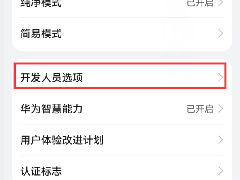 2、点击“开发人员选项”按钮,进入开发人员选项的设置页面。