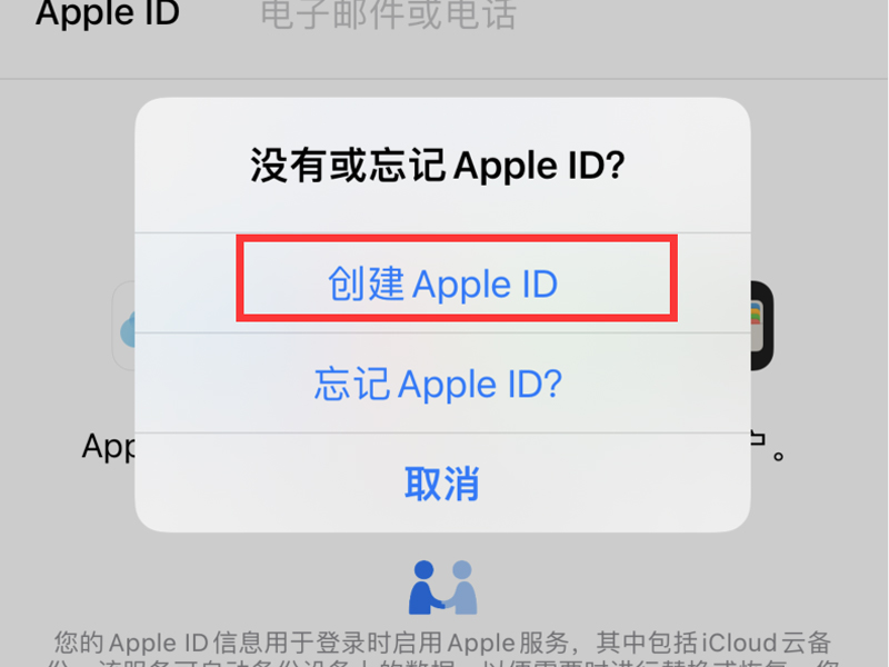 2、点击“没有或忘记Apple ID”按钮,进入“创建Apple ID”的页面中。