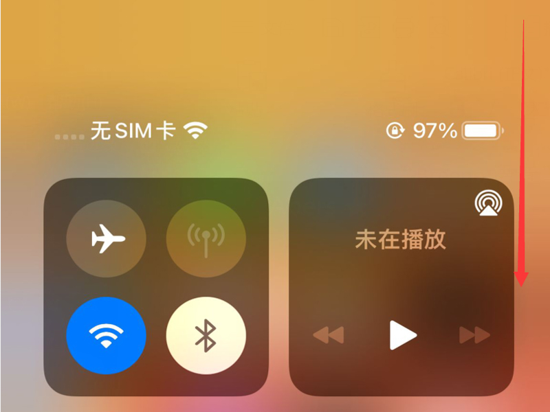 1、进入手机的桌面中,从手机屏幕的右上角往下滑,呼出控制中心的界面。
