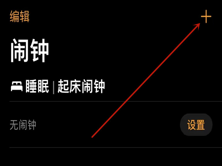1、打开时钟,点击右上方“+”进入添加闹钟页面。