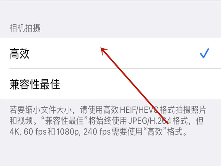 3、点击相机拍摄下方的“高效”即可使用4K和1080p画质。
