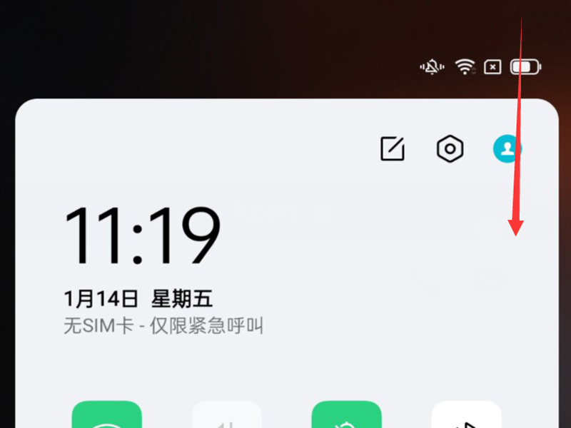 1、进入手机的桌面中,从手机屏幕的右上角往下滑,呼出控制中心的界面。