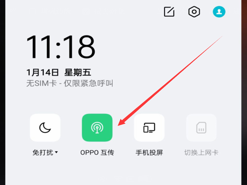2、在控制中心里打开“oppo互传”的开关。