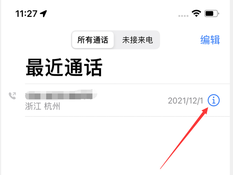 2、点击要彻底拉黑对方的电话号码右边的“感叹号”图标,进入该号码的设置页面。