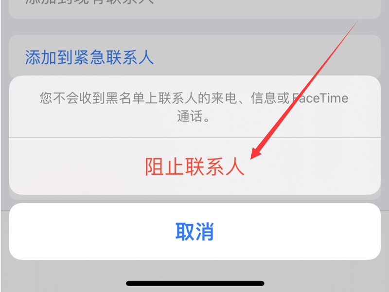 3、点击“阻止此来电号码”按钮,设置“阻止联系人”即可彻底拉黑对方。