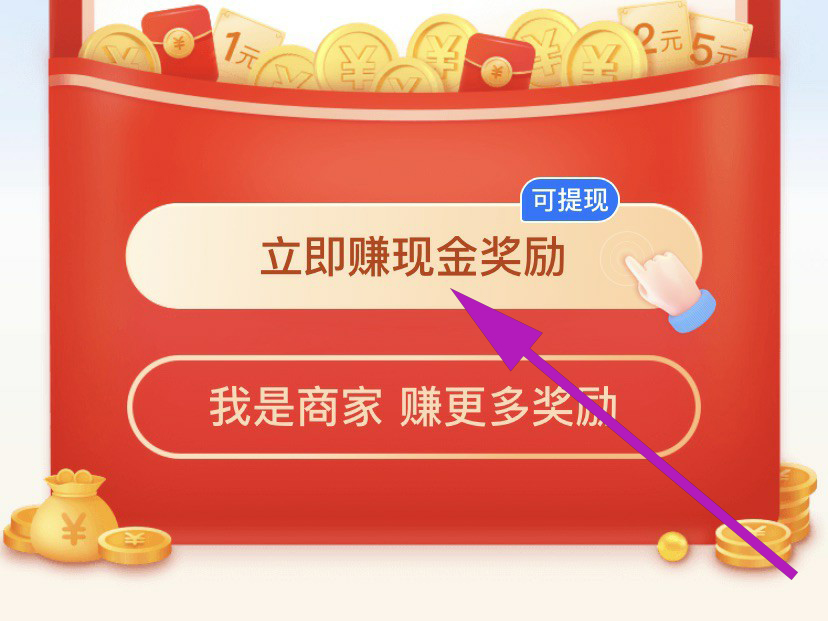 2、在小程序首页里,点击“立即赚现金奖励”选项。