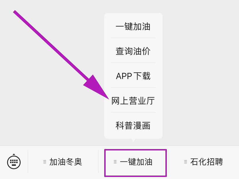 3、点击页面正下方的“一键加油”,然后点击“网上营业厅”。