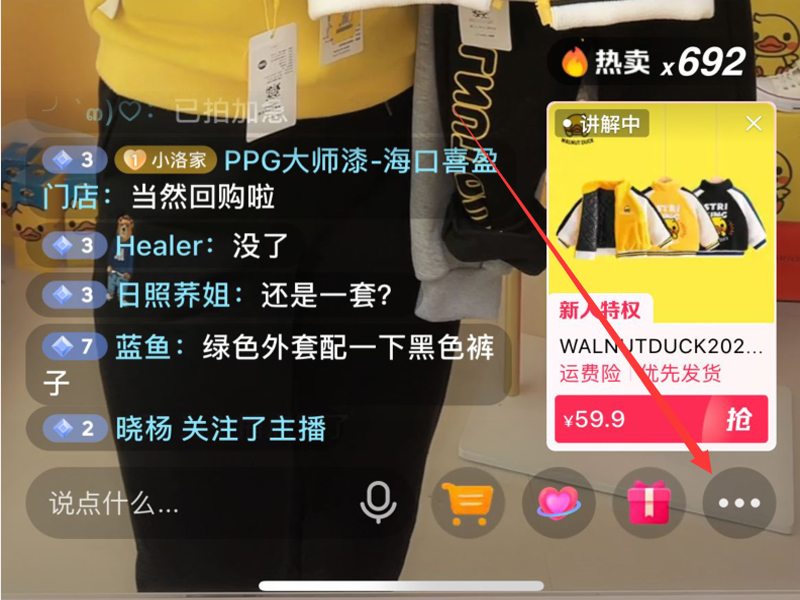 1、打开抖音app,进入一个直播间当中,点击右下角的三小点按钮。