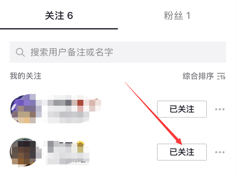 3、在我的关注列表中找到需要取消关注的人,点击“已关注”按钮即可取关成功。