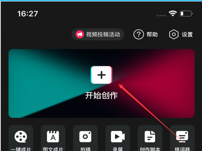 1、打开剪映app,在“剪辑”页面中点击上方的“开始创作”按钮。