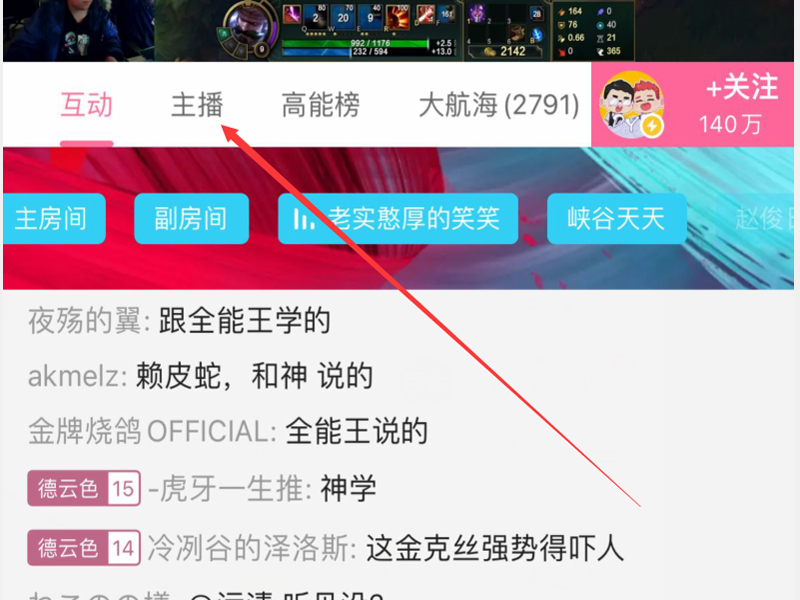 2、进入一个直播间中,点击上方的“主播”按钮,进入主播的页面。