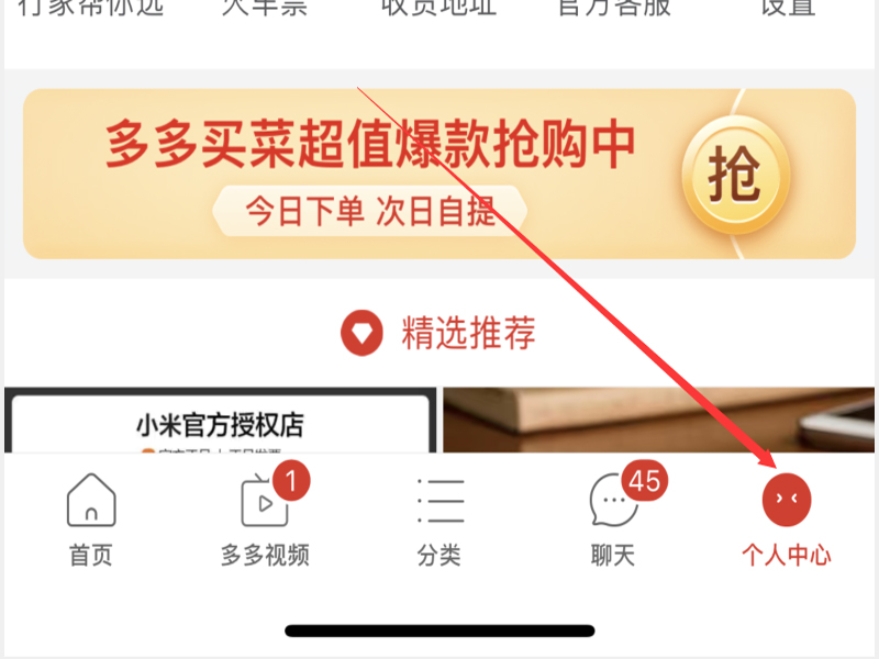 1、打开拼多多app,点击进入右下角的个人中心页面。