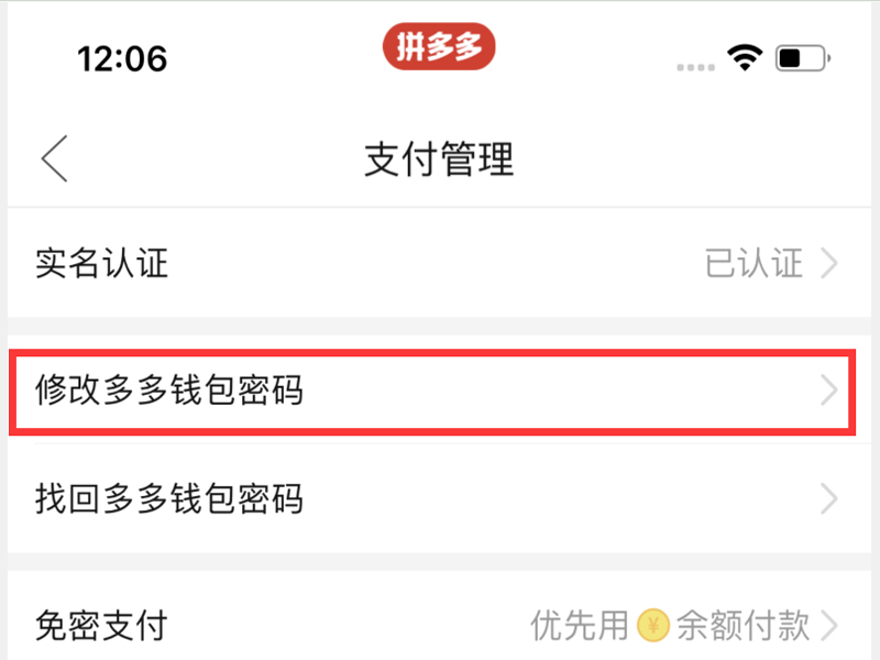 3、点击“修改多多钱包密码”按钮,验证钱包密码后进入修改的页面。
