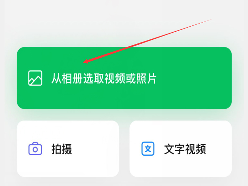 2、选择“从相册选取视频或照片”,选择一个视频完成添加。