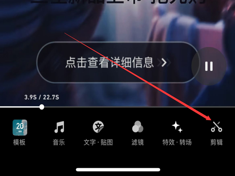 3、点击右下方的“剪辑”按钮,打开剪辑工具栏。