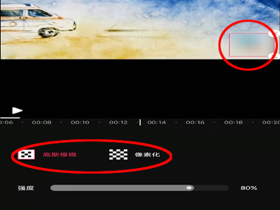 4、选择模糊参数和模式,调整并移动模糊方块,使其遮挡在水印上。