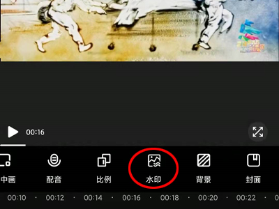 2、向右滑动菜单,点击“水印”,进入水印页面。