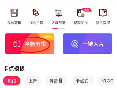 1、打开爱剪辑app,点击“全能剪辑”,导入需要去除水印的视频。
