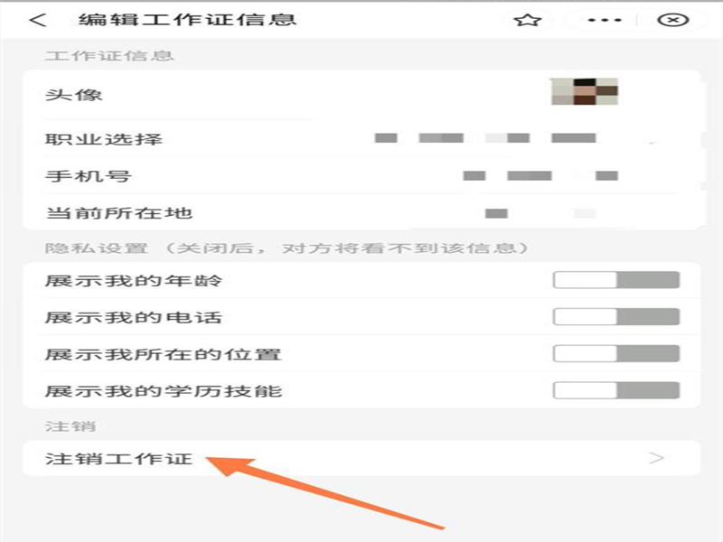 3、在打开的页面中,点击“注销工作证”。