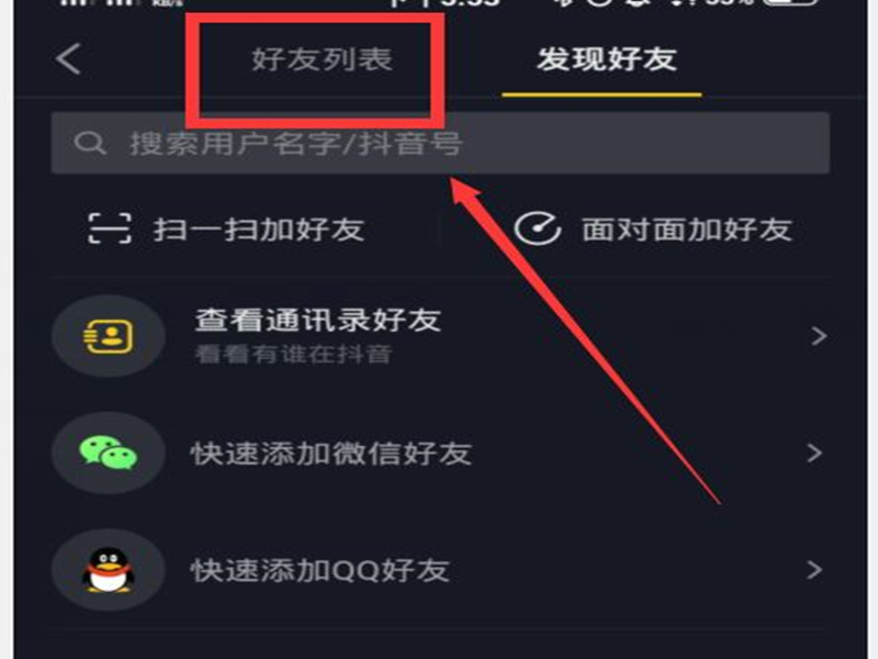3、进入“添加好友”的界面后打开界面左侧栏的“好友列表”。