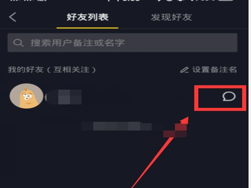 4、选择要进行视频通话的好友并打开右侧“消息”的标志。