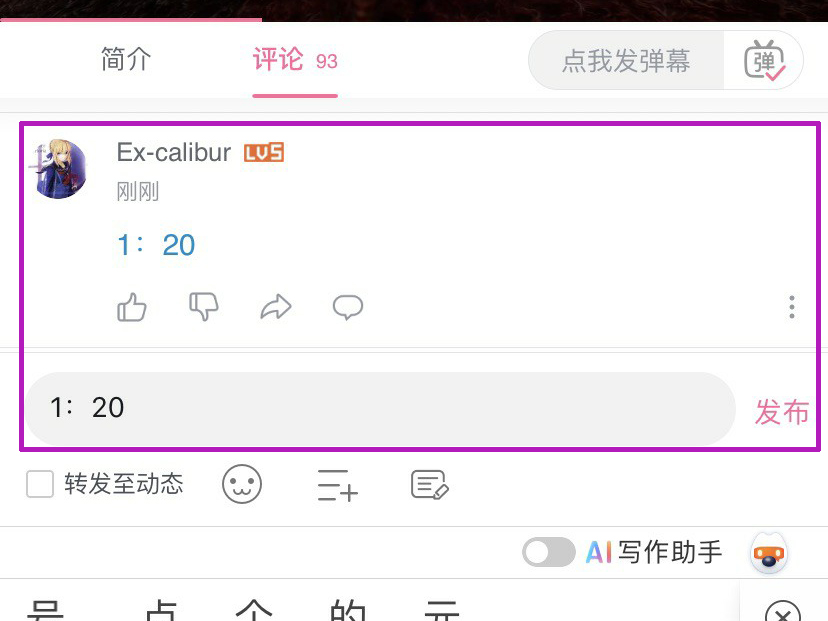 1、输入数字时间,如1:20.左边的1是分钟右边的20是秒,这种格式的评论就会自动转为带时间跳转的评论。