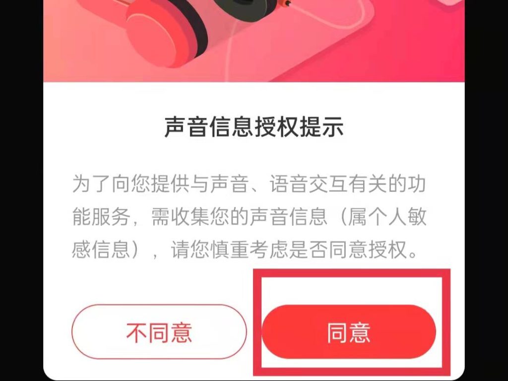 2、进入听歌识曲页面,会弹出一个声音信息授权提示,点击同意即可。