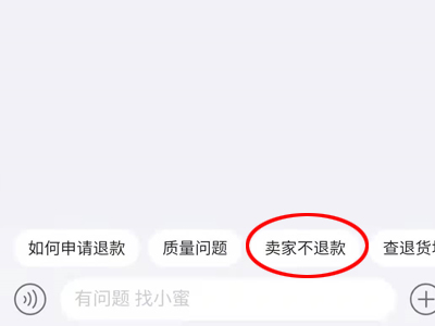 3、点击输入框上方的“卖家不退款” ,或编辑“卖家不退款”给客服,将相关订单发给客服小蜜,进行申诉。