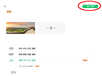 3、进入朋友圈发表页面,点击“谁可以看”。