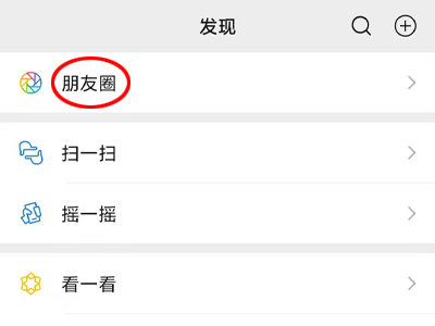 1、打开微信,点击底部的“发现”,再点击顶部的“朋友圈”。