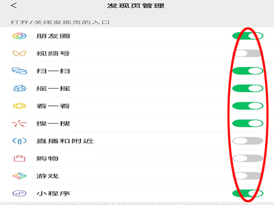 5、打开相应的开关,即可以使这些功能呈现在发现页。