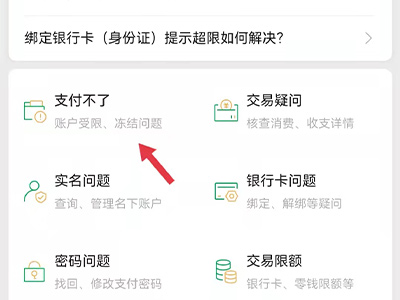 在微信帮助中心解除支付异常的具体操作如下:1、 打开微信app,进入支付界面,点击钱包,进入页面。2、进入页面后,找到底部的“帮助中心”,点击打开。3、选择“支付不了”选项,点击进入。4、点击“解除支付限制”即可解除提现异常。