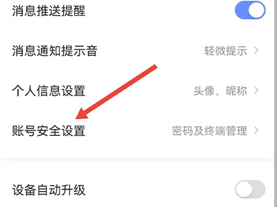 2、在页面中找到“账号安全设置”选项,点击进入。